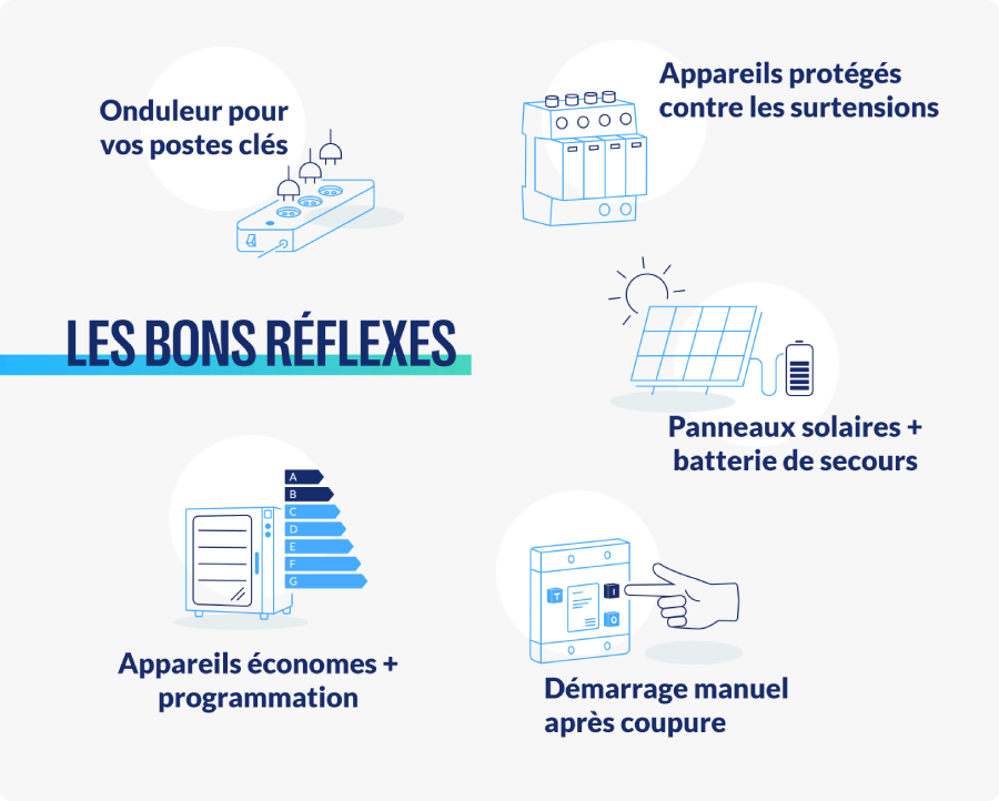 Une machine qui s’arrête d’un coup. Des lumières qui clignotent. Un terminal bancaire qui redémarre tout seul… Pas de doute : le courant vient de faire des siennes.