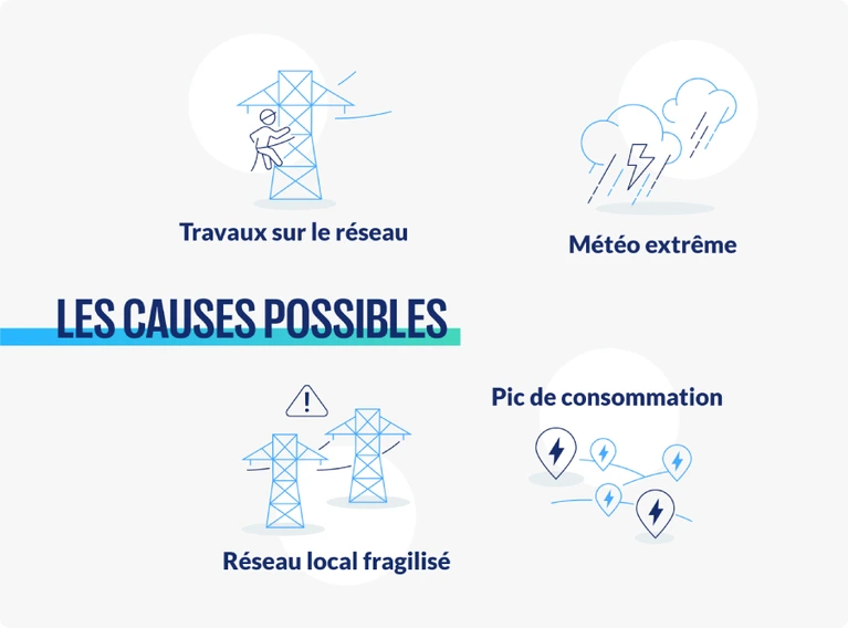 On parle alors de "perte de réseau" : une coupure ou une baisse de tension électrique, temporaire ou plus longue, qui vous coupe de l’électricité.