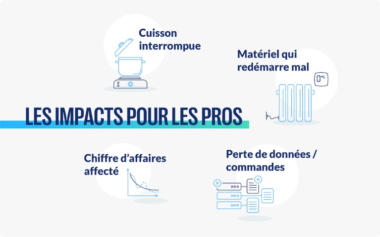Une microcoupure, c’est une coupure très brève, souvent moins d’une seconde. Elle ne vous plonge pas forcément dans le noir total, mais elle suffit à faire redémarrer vos équipements sensibles (caisse, frigo, ordinateur, four…).